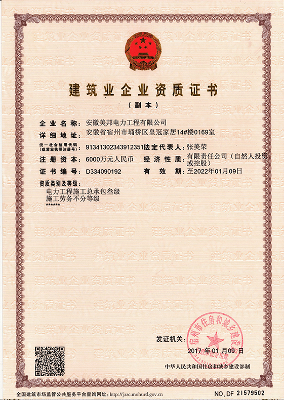 安徽美邦電力工程有限公司成立于2015年6月,坐落于宿州高新區(qū)。是一家從事電力工程設(shè)計、電力設(shè)備生產(chǎn)、電力工程施工、電力托管服務(wù)、電力工程搶險為一體的一站式綜合性公司。公司現(xiàn)有各類專業(yè)技術(shù)職稱的管理人員及大批從事電力工程專業(yè)施…